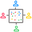Four players compete across 12 territories grouped into four regions. Each player is assigned a color and must attack neighboring territories to conquer their secret objective regions before any other player conquers theirs.
